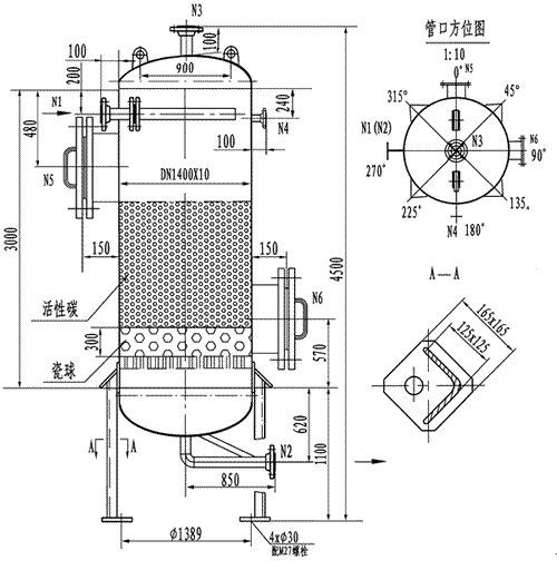 产品特性 活性碳过滤器内装8-10目颗粒状活性碳,一般石化行业中用于双脱装置,水处理车间等。活性碳有煤质碳、果壳碳或椰壳碳。它主要去除流体中的有机物,胶体化合物和硫化物,余氯等杂质,属于吸附过滤方式。 活性碳吸附饱和后无法通过反冲洗再生,必须及时更换,我公司在石油、化工、水处理等行业均有比较成熟的实例。各种技术参数不尽相同,请将处理量、工作压力、粘度、密度、温度等参数、传真或致电。 本公司将为你提供最合适的设备形式。 望来电询问 其主要典型结构如下